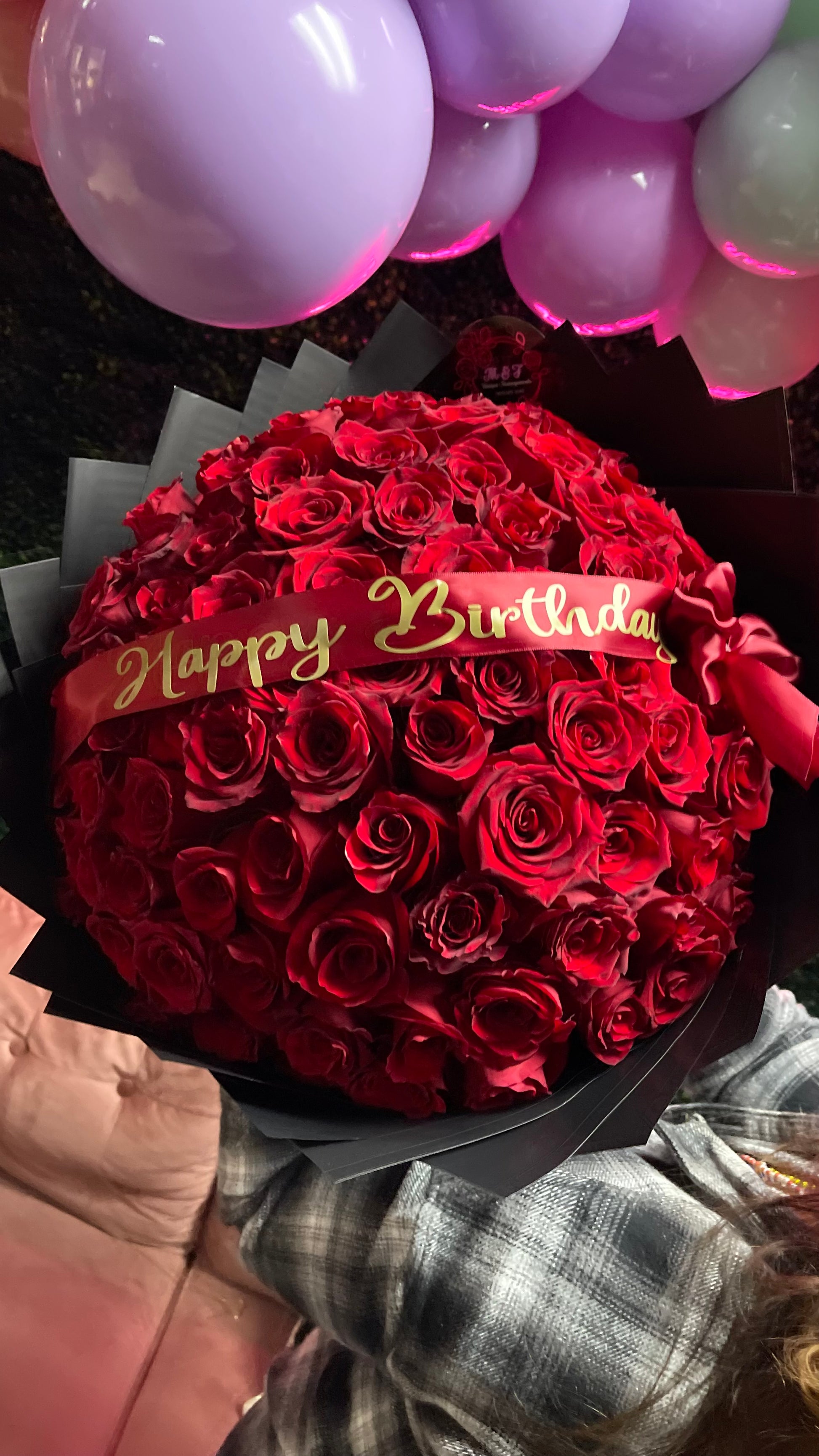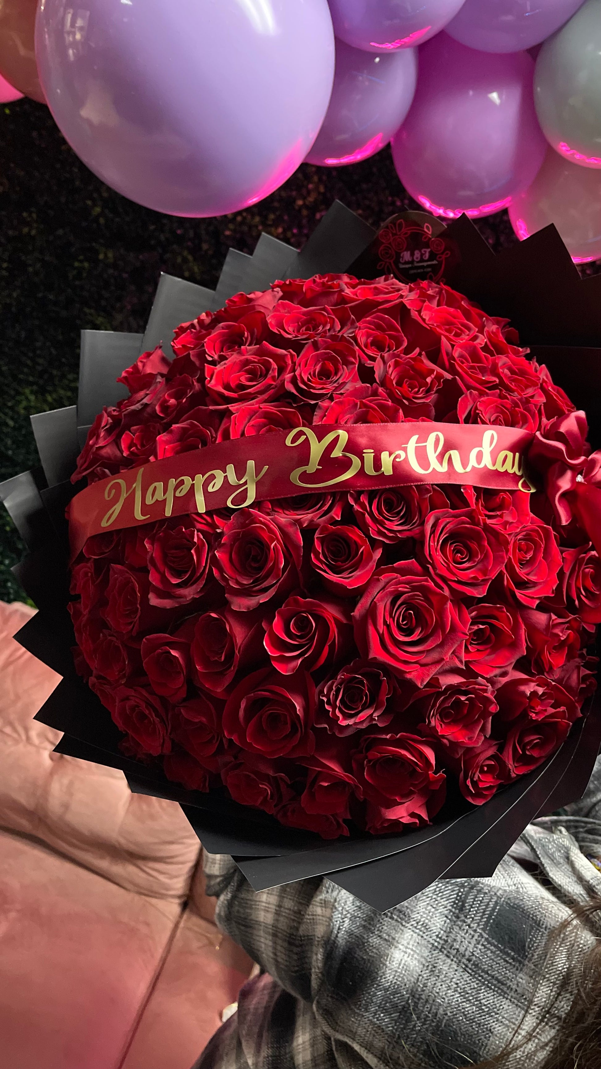 Mark a milestone birthday with the grandeur of our exquisite bouquet, featuring an impressive 100 red roses. This lavish arrangement is a bold expression of love and admiration, capturing the passion and significance of the occasion.