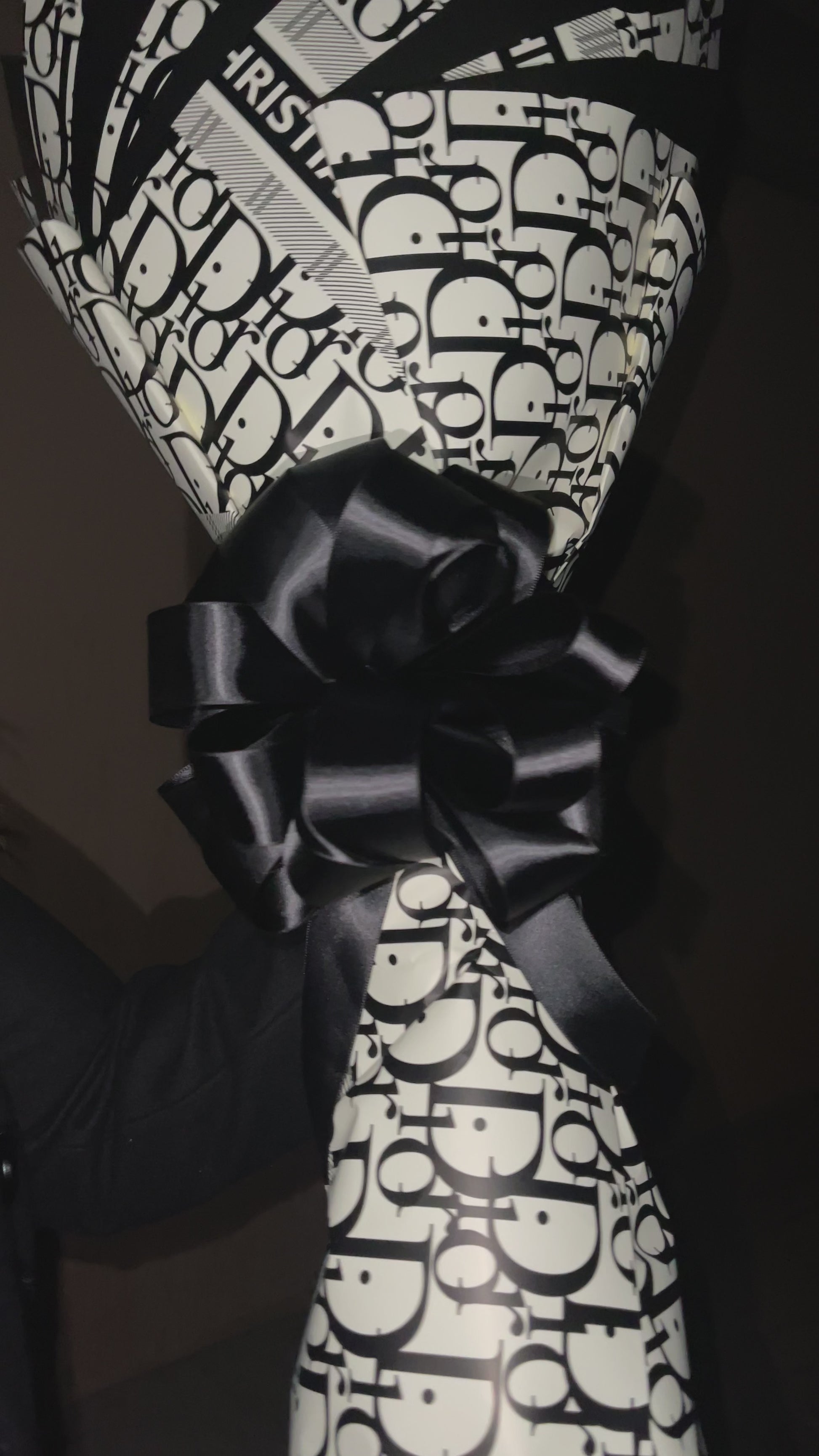 Presented in our signature Dior wrapping paper printed with the iconic Dior logo, this bouquet exudes elegance. It's tied with a matching black silk ribbon for a tailored finish.